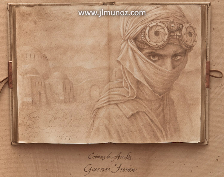 Crónicas de Arrakislapiz sanguina sobre libro con papel teñido33,5x24